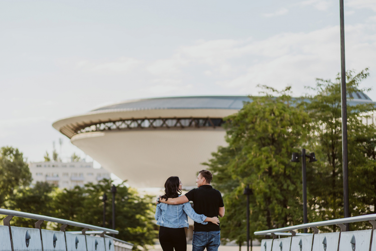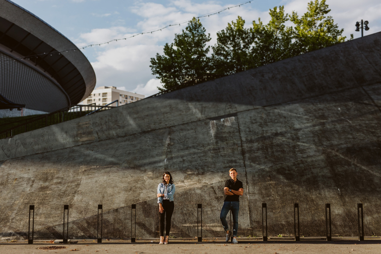 Dominika i Sebastian zaprosili nas na miejski spacer, który zamienił się w pełną czułości opowieść. Zaczęliśmy przy Spodku i Strefie Kultury – nowoczesne tło doskonale zagrało z eleganckimi stylizacjami pary. W promieniach słońca tworzyliśmy kadry, które podkreślały nie tylko ich styl, ale przede wszystkim emocje.