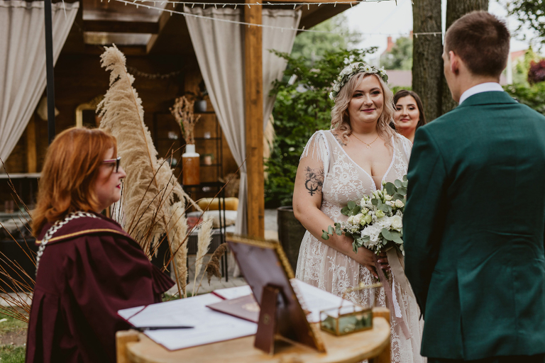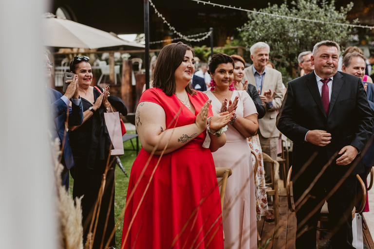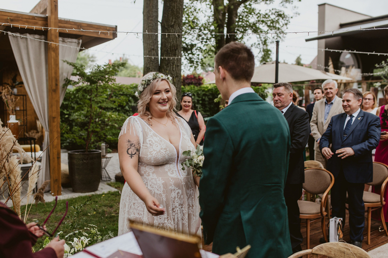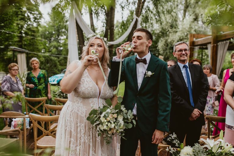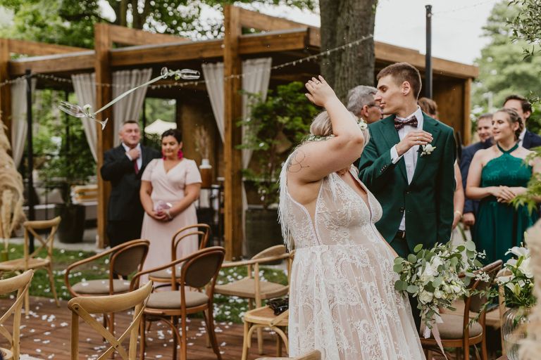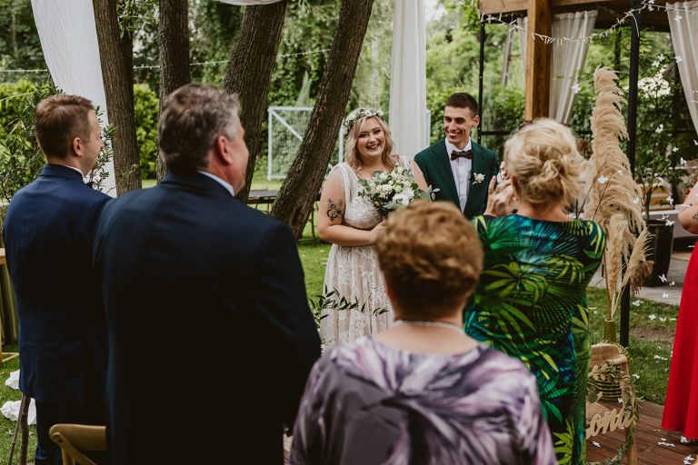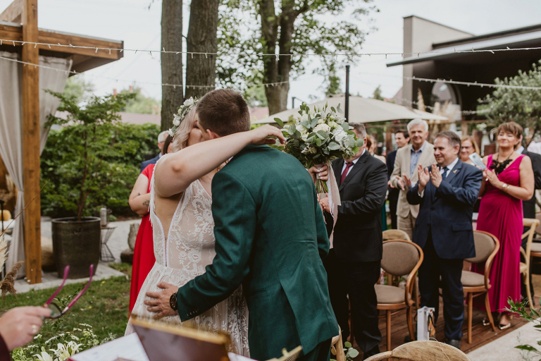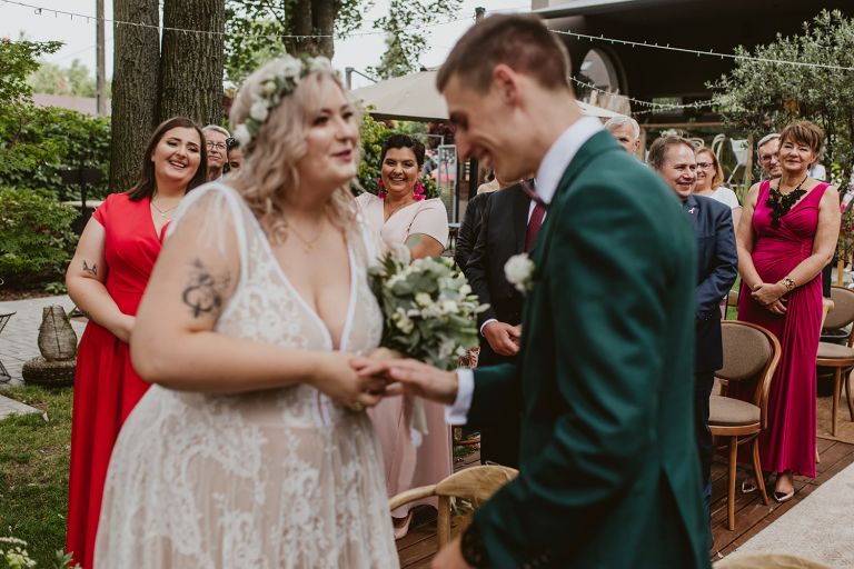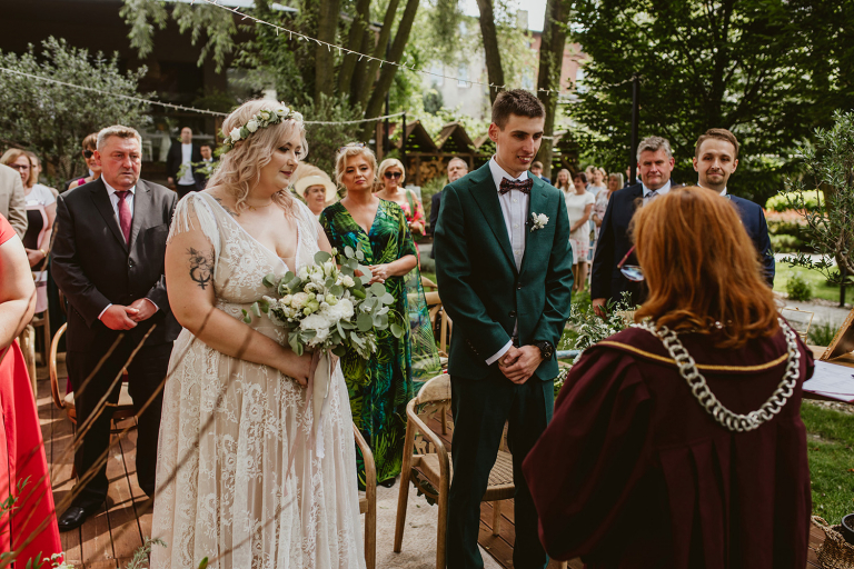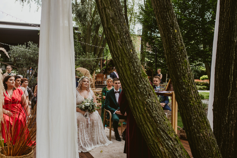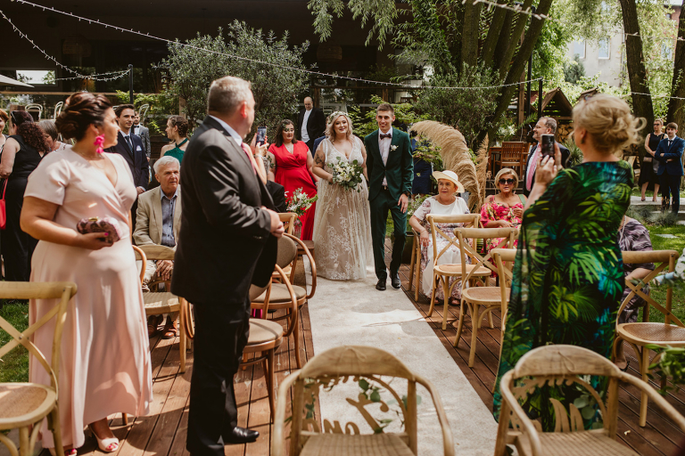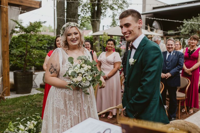 Najważniejsze „TAK” w swoim życiu Agata i Piotr wypowiedzieli w obłędnie pięknym ogrodzie restauracji Umami mieszczącej się w Pyskowicach koło Gliwic. To idealne miejsce na ślub w stylu rustykalnym. Natura przeplata się tutaj z wyczuciem stylu i dobrym designem. Ogród jest z jednej strony tajemniczy i odrobinę dziki, a z drugiej: świetnie zaaranżowany. Jego przestrzeń płynnie łączy się z przestrzenią restauracji i licznych altanek czy innych miejsc, w których można na moment przysiąść i odpocząć.