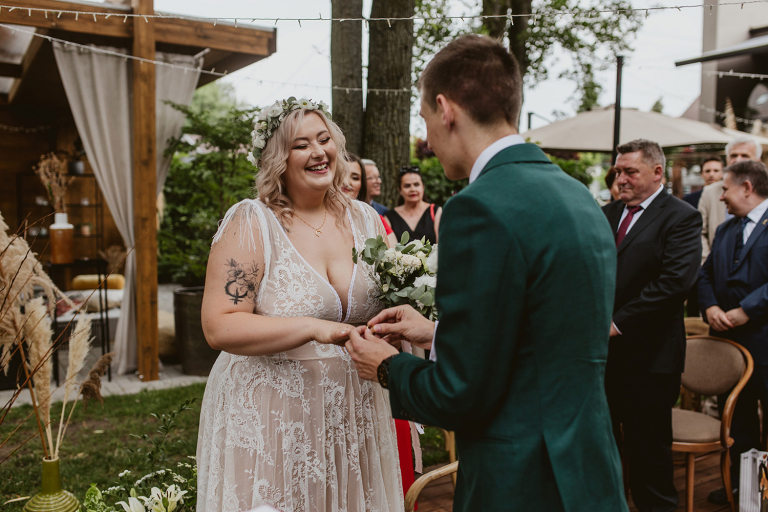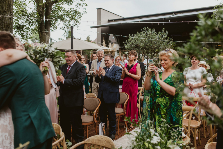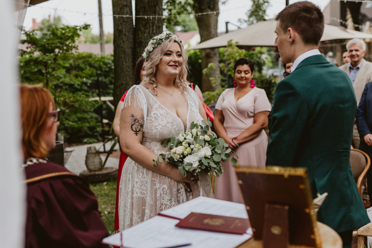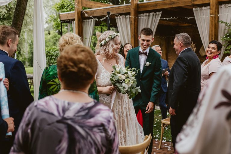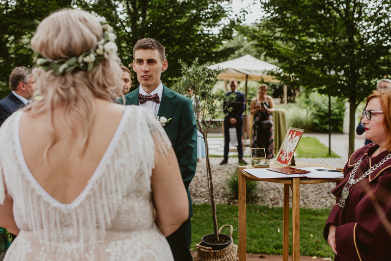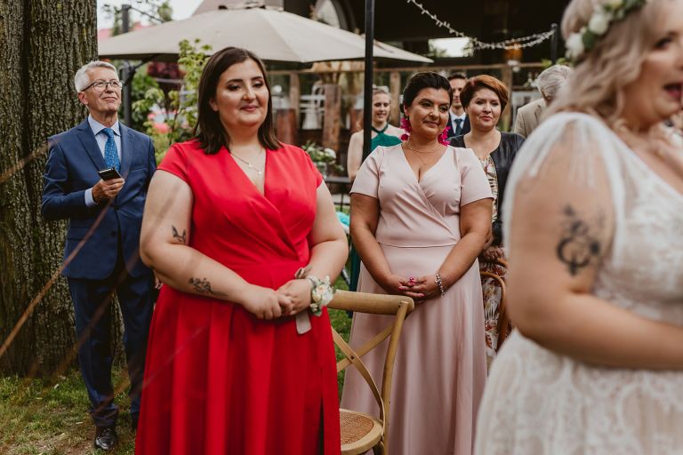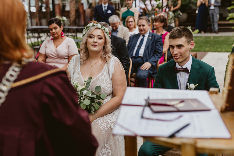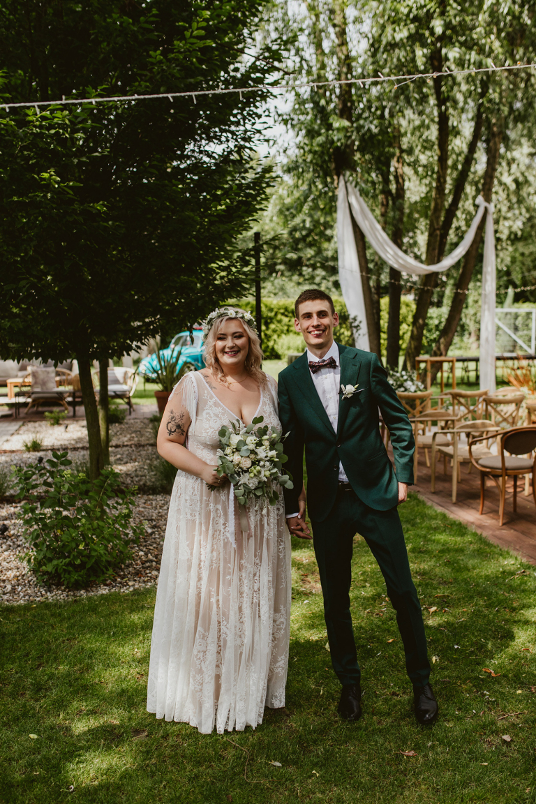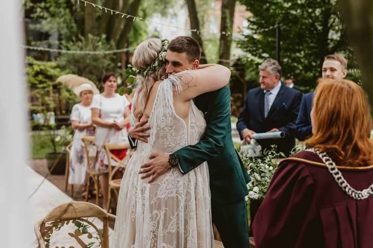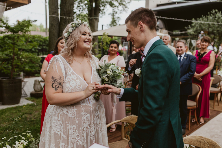 Najważniejsze „TAK” w swoim życiu Agata i Piotr wypowiedzieli w obłędnie pięknym ogrodzie restauracji Umami mieszczącej się w Pyskowicach koło Gliwic. To idealne miejsce na ślub w stylu rustykalnym. Natura przeplata się tutaj z wyczuciem stylu i dobrym designem. Ogród jest z jednej strony tajemniczy i odrobinę dziki, a z drugiej: świetnie zaaranżowany. Jego przestrzeń płynnie łączy się z przestrzenią restauracji i licznych altanek czy innych miejsc, w których można na moment przysiąść i odpocząć.