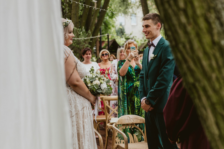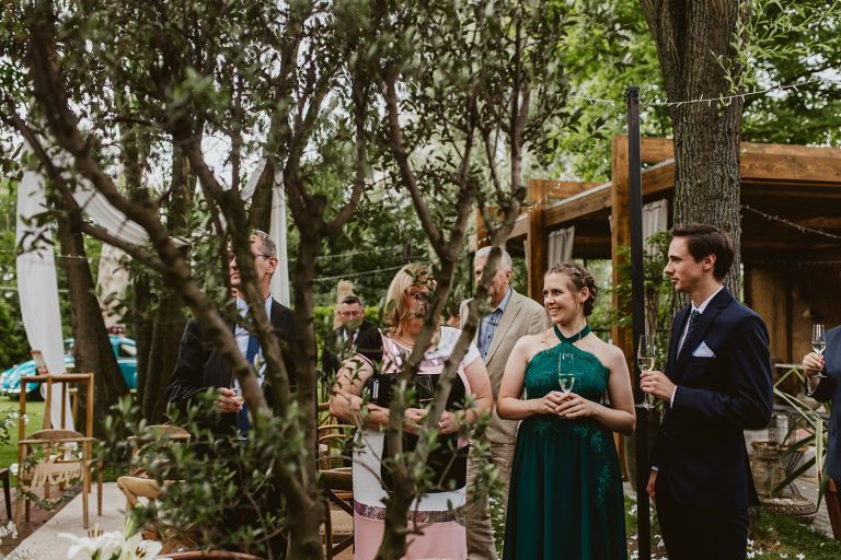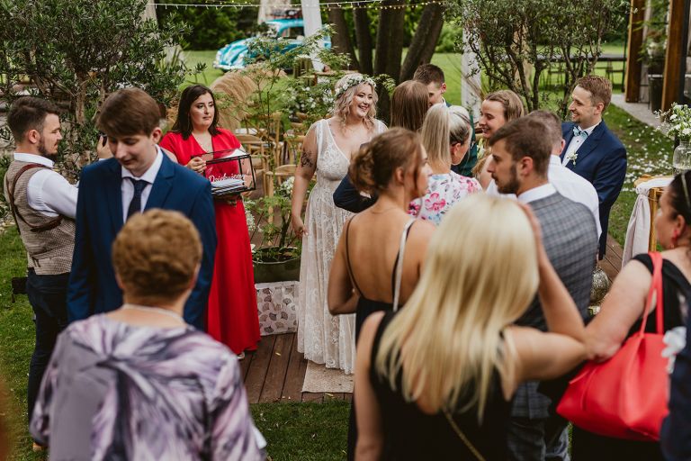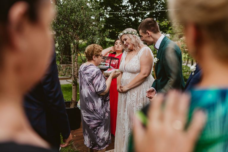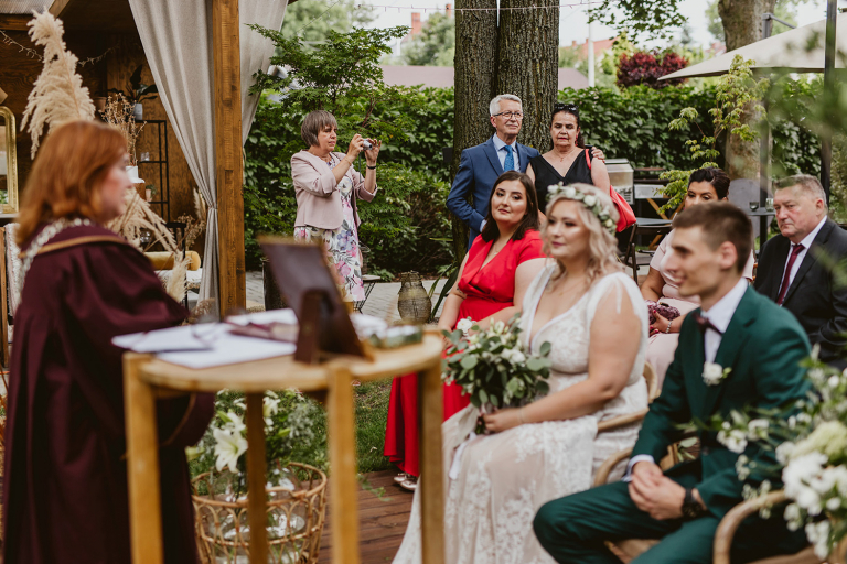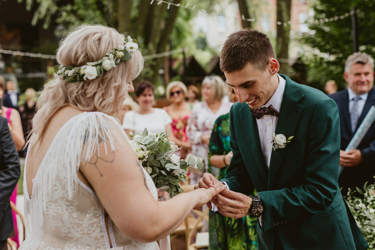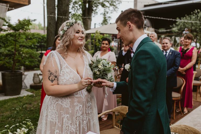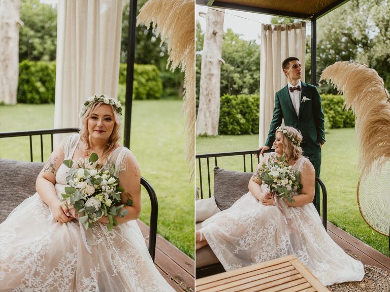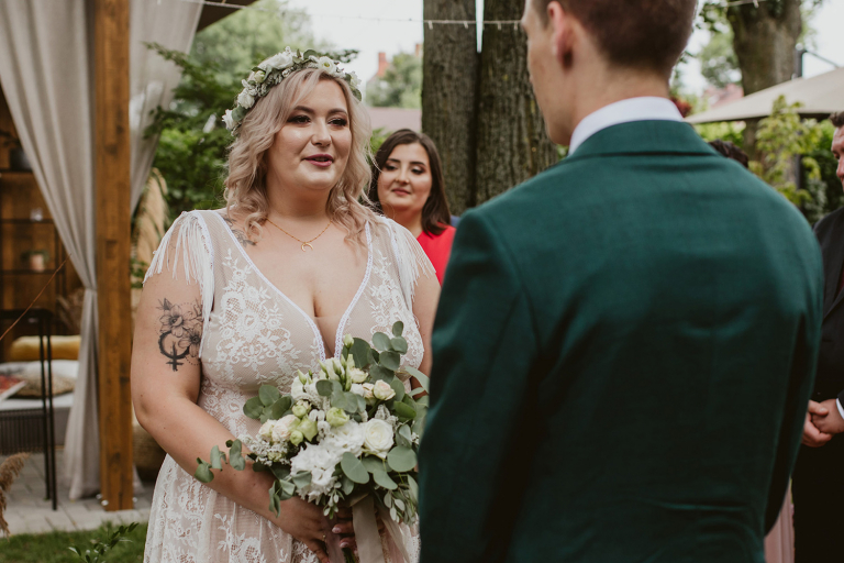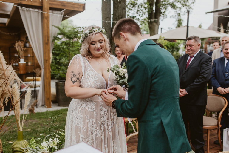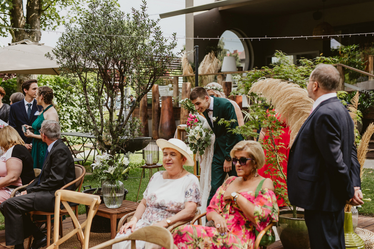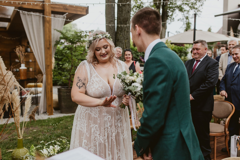 Najważniejsze „TAK” w swoim życiu Agata i Piotr wypowiedzieli w obłędnie pięknym ogrodzie restauracji Umami mieszczącej się w Pyskowicach koło Gliwic. To idealne miejsce na ślub w stylu rustykalnym. Natura przeplata się tutaj z wyczuciem stylu i dobrym designem. Ogród jest z jednej strony tajemniczy i odrobinę dziki, a z drugiej: świetnie zaaranżowany. Jego przestrzeń płynnie łączy się z przestrzenią restauracji i licznych altanek czy innych miejsc, w których można na moment przysiąść i odpocząć.