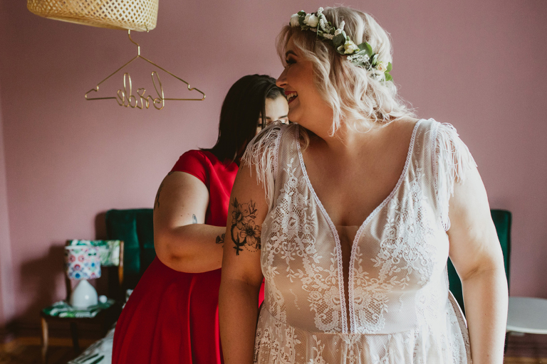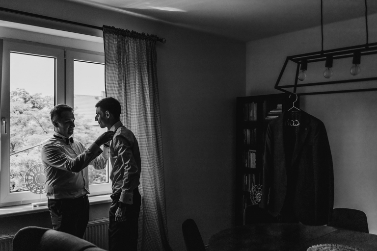 W trakcie przygotowań szybko okazało się zresztą, że właśnie taka swobodna atmosfera będzie nam towarzyszyć przez cały dzień. Było dużo luzu i śmiechu, a my mieliśmy sporo czasu, żeby złapać najdrobniejsze szczegóły i poeksperymentować z kadrami. Takie zdjęcia z przygotowań do wesela lubimy najbardziej!