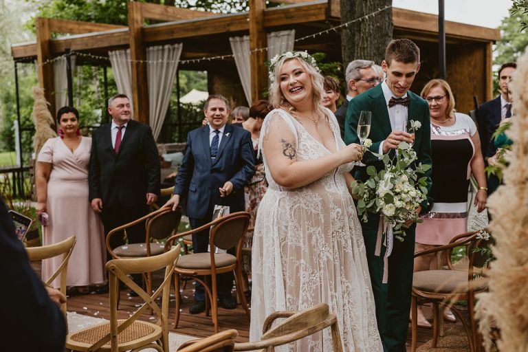 Jeśli ktoś poprosiłby nas, żebyśmy opisali idealne wesele w stylu rustykalnym, moglibyśmy opowiadać naprawdę długo: o naturalności i swobodzie, o prostocie dekoracji, o wszechobecnej zieleni, polnych kwiatach i suszonych ziołach, o ozdobach prosto z targu staroci. Ale moglibyśmy też ułatwić sobie zadanie i po prostu pokazać zdjęcia ze ślubu i przyjęcia Agaty i Piotra. Jeśli szukacie pomysłów na wesele w stylu rustykalnym (z niebanalnym retro akcentem), wśród tych kadrów znajdziecie ich całą masę!