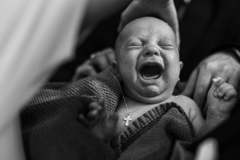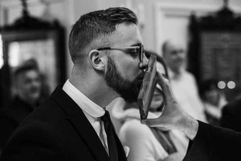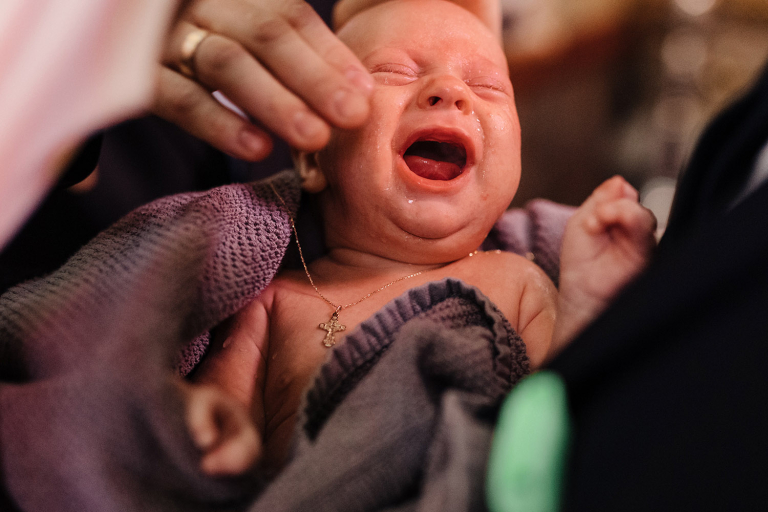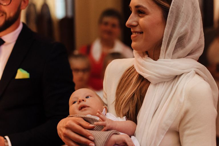 Najważniejszy był oczywiście Kubuś – jego reakcje, spojrzenia, mimika. Ale nie tylko. W fotografii chrztu skupiamy się również na tym, co wokół: czułych gestach rodziców, wzruszeniu dziadków, symbolice wnętrza. Staramy się opowiedzieć historię, która będzie pamiątką dla całej rodziny.