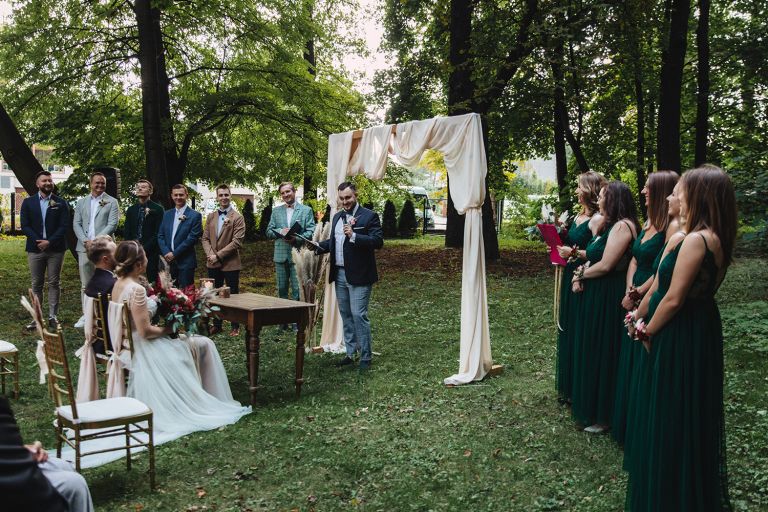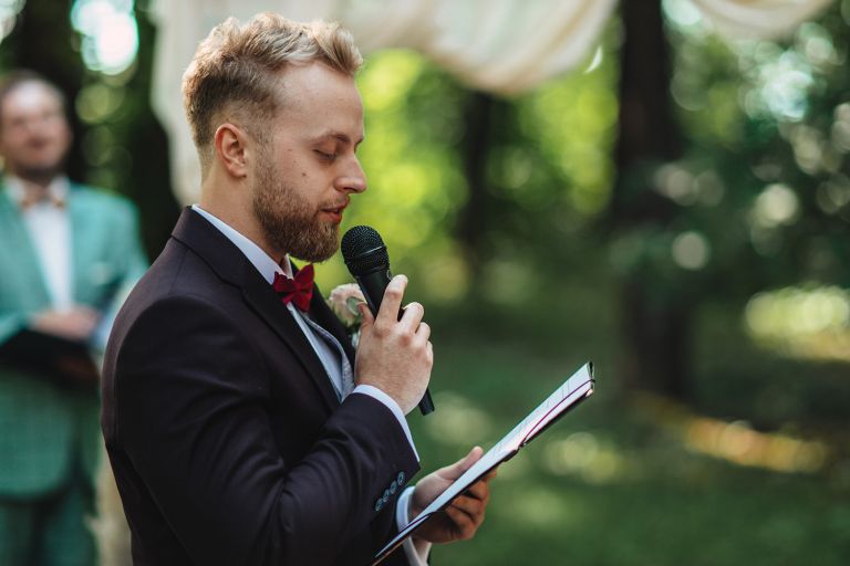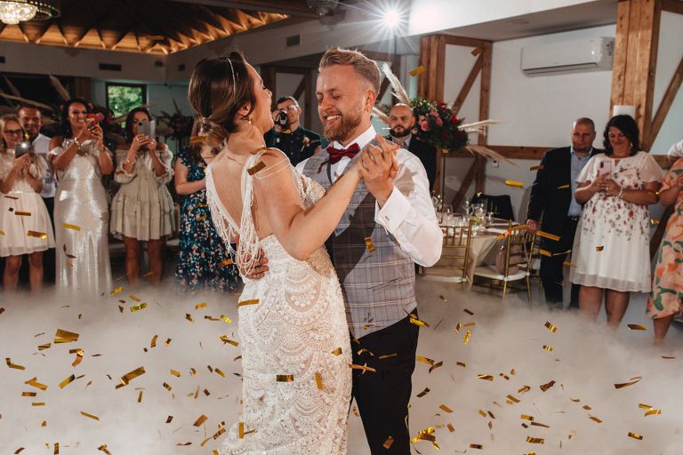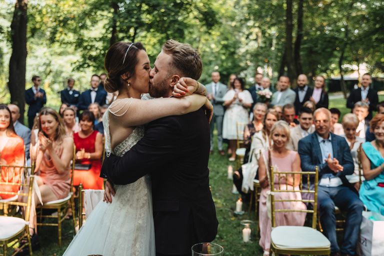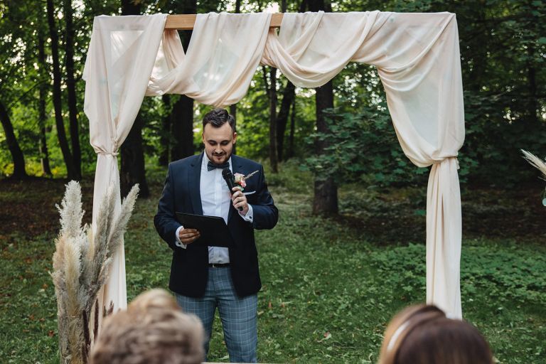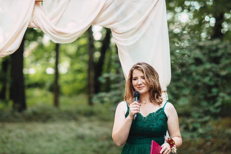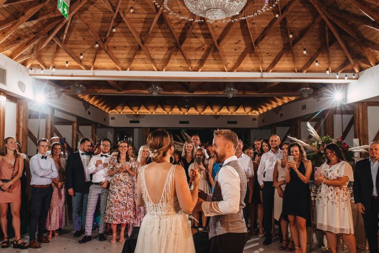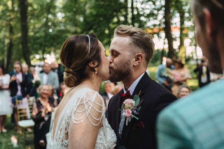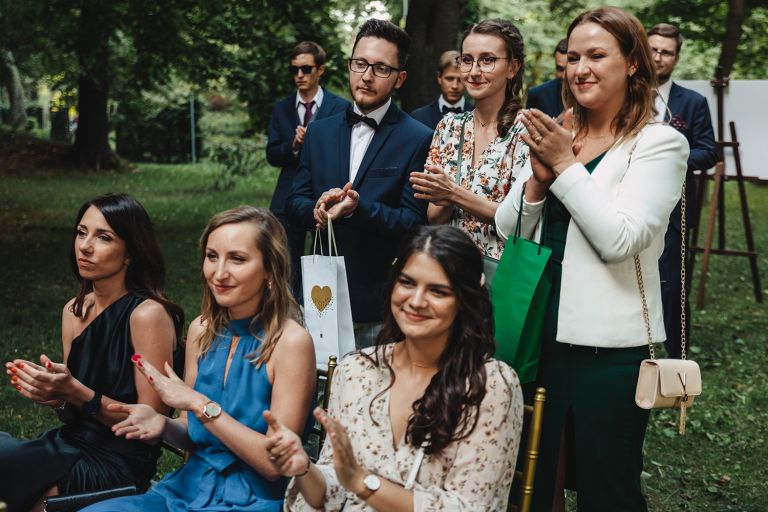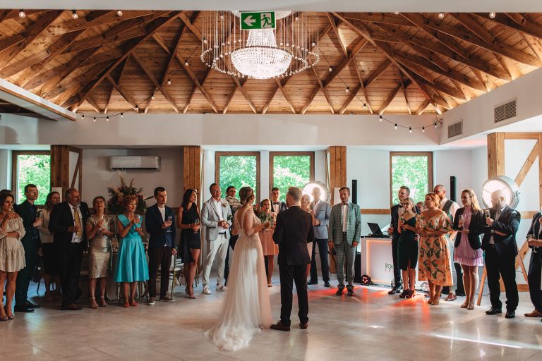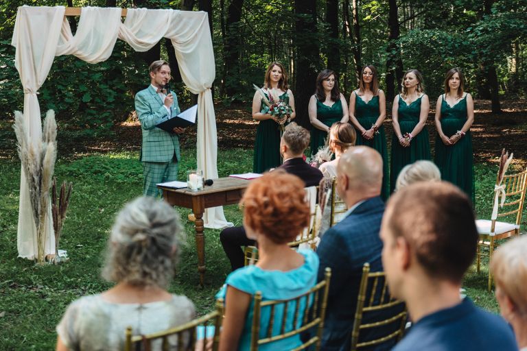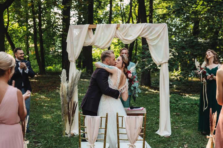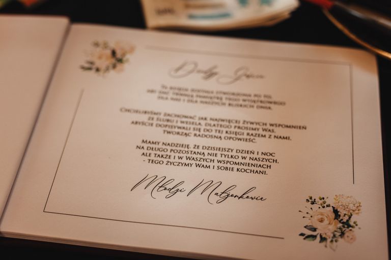 Ślub odbył się w konwencji humanistycznej. Głównym momentem były przysięgi – samodzielnie napisane przez Parę Młodą. Były piękne, szczere, wzruszające. To jeden z tych momentów, gdy cała sala wstrzymuje oddech. W oczach gości pojawiły się łzy – i trudno się temu dziwić.