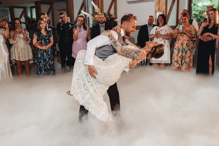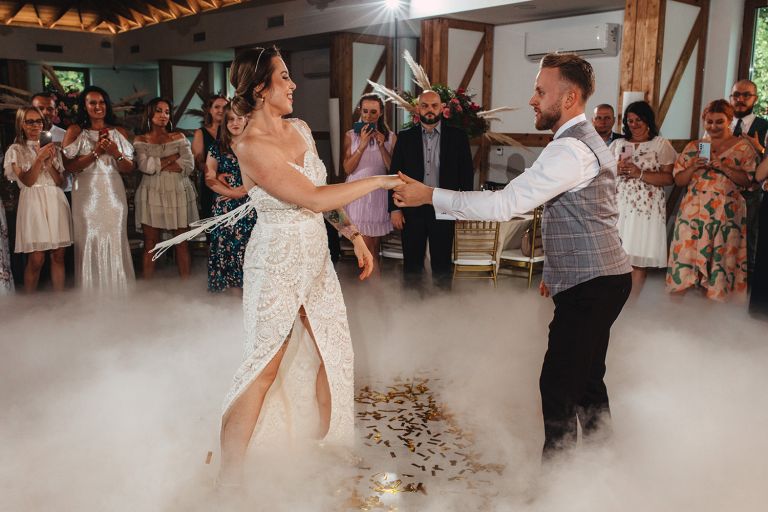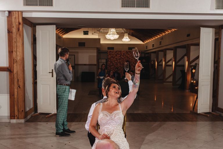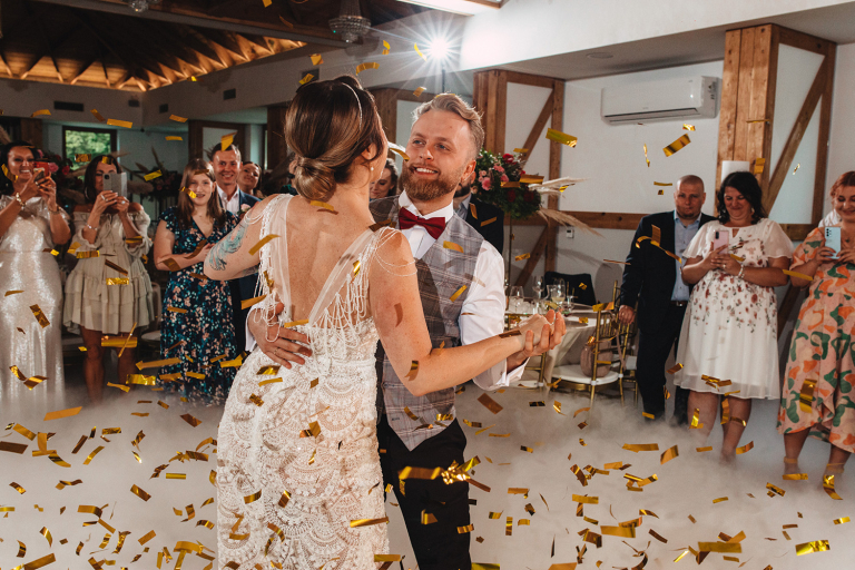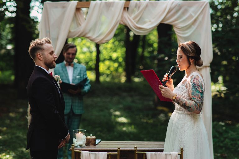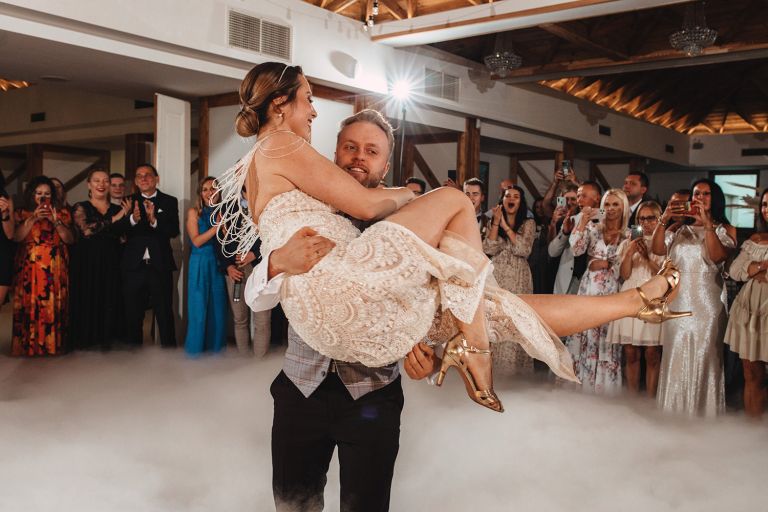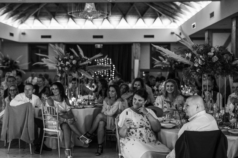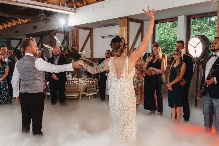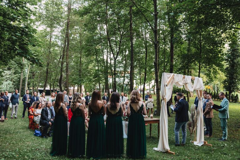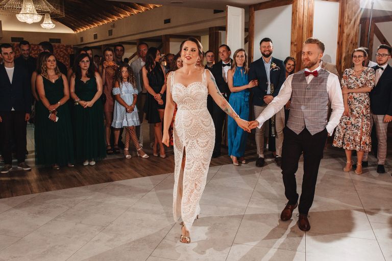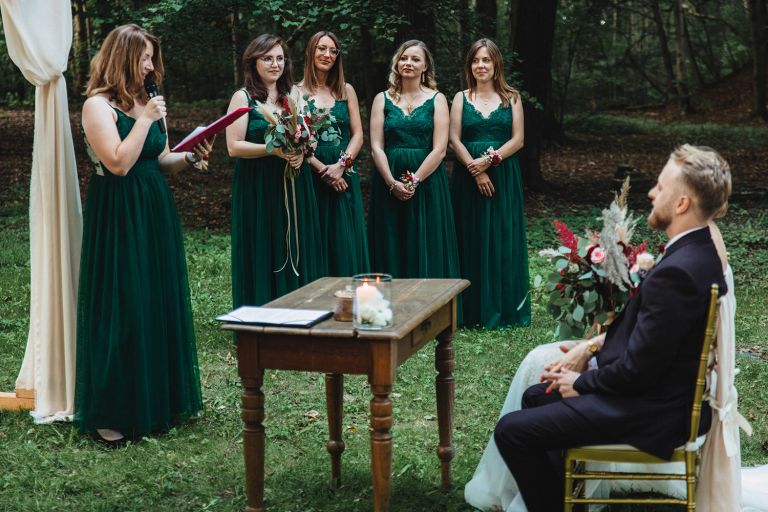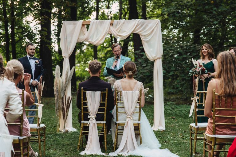 Ślub odbył się w konwencji humanistycznej. Głównym momentem były przysięgi – samodzielnie napisane przez Parę Młodą. Były piękne, szczere, wzruszające. To jeden z tych momentów, gdy cała sala wstrzymuje oddech. W oczach gości pojawiły się łzy – i trudno się temu dziwić.