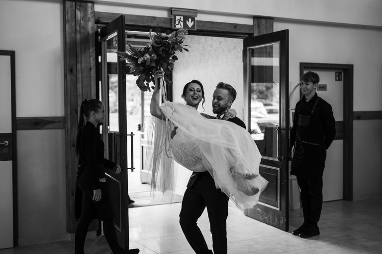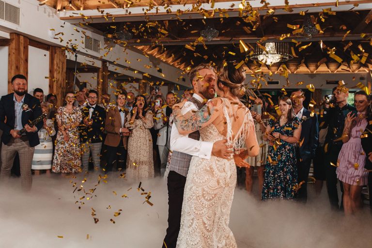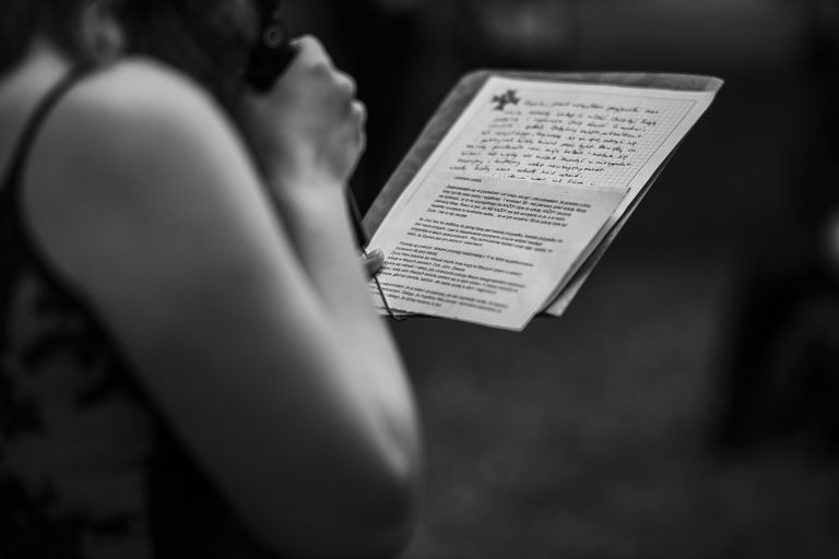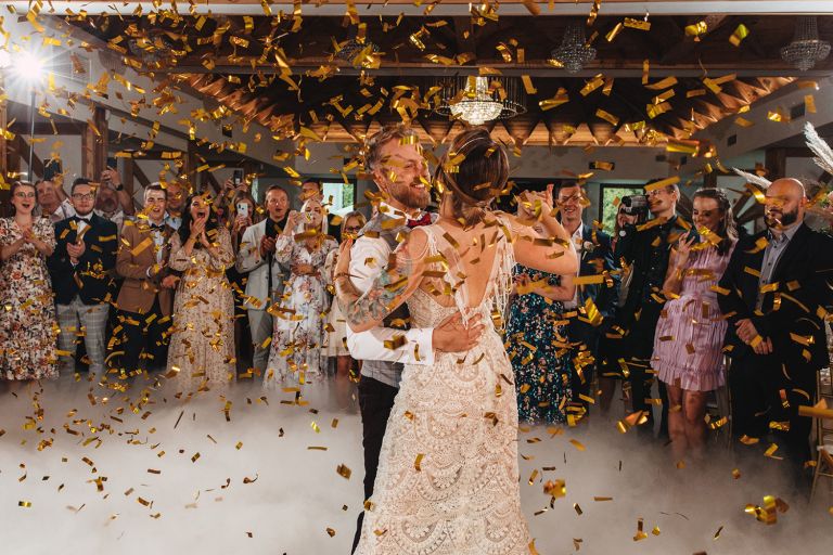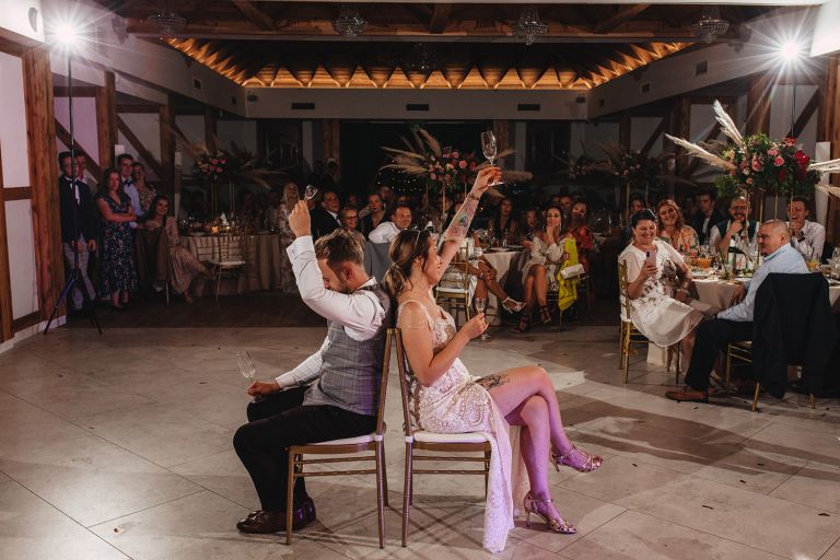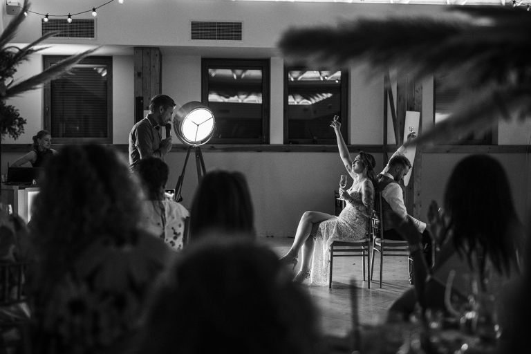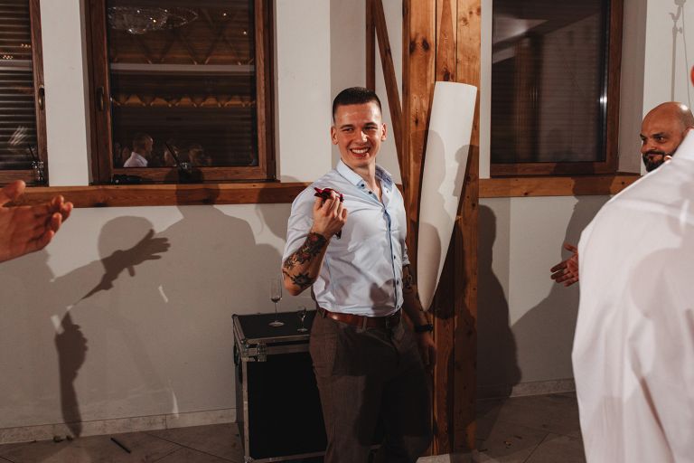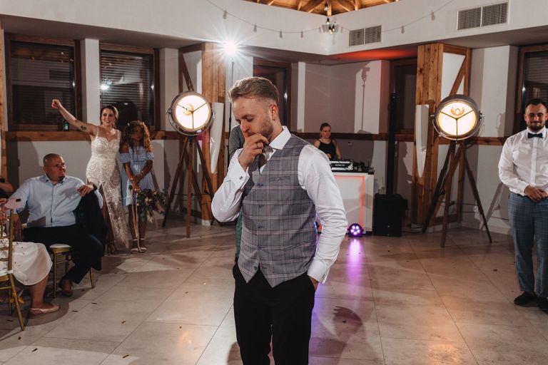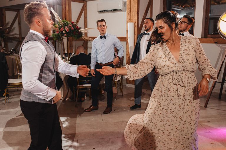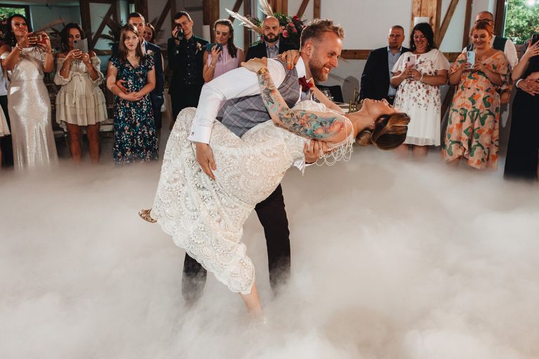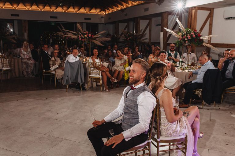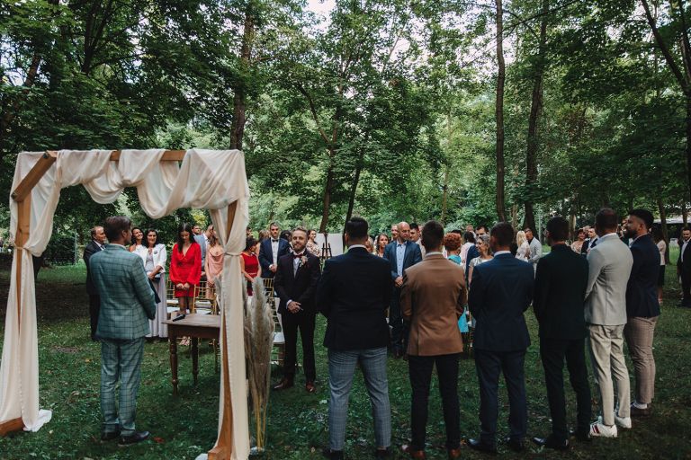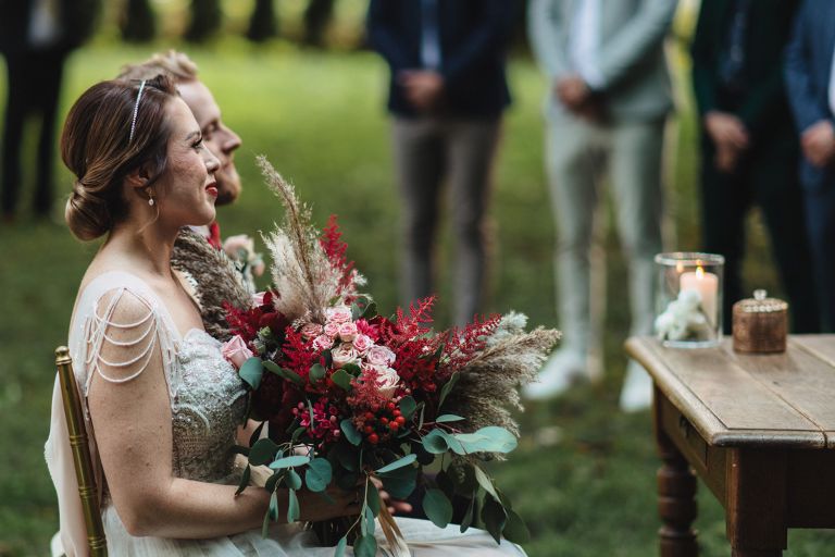 Ślub odbył się w konwencji humanistycznej. Głównym momentem były przysięgi – samodzielnie napisane przez Parę Młodą. Były piękne, szczere, wzruszające. To jeden z tych momentów, gdy cała sala wstrzymuje oddech. W oczach gości pojawiły się łzy – i trudno się temu dziwić.