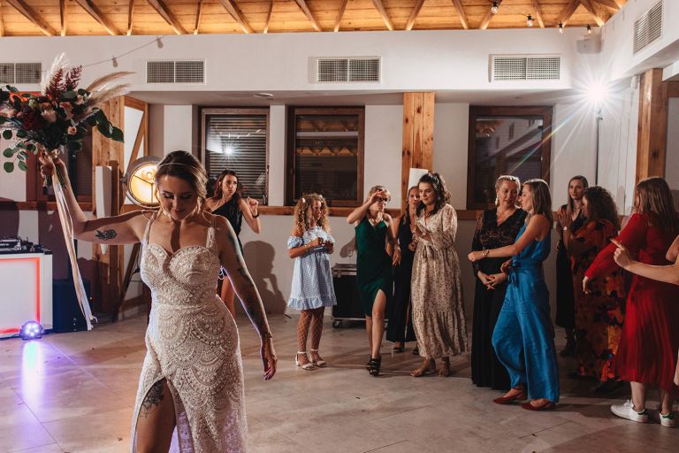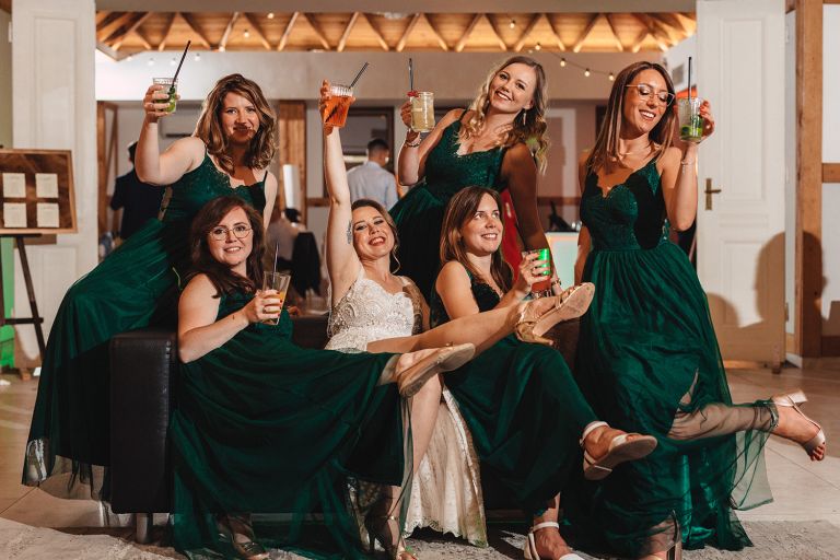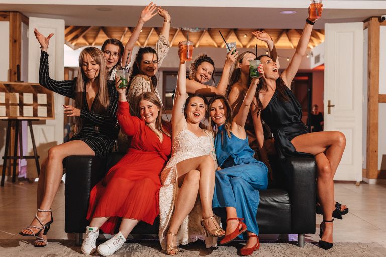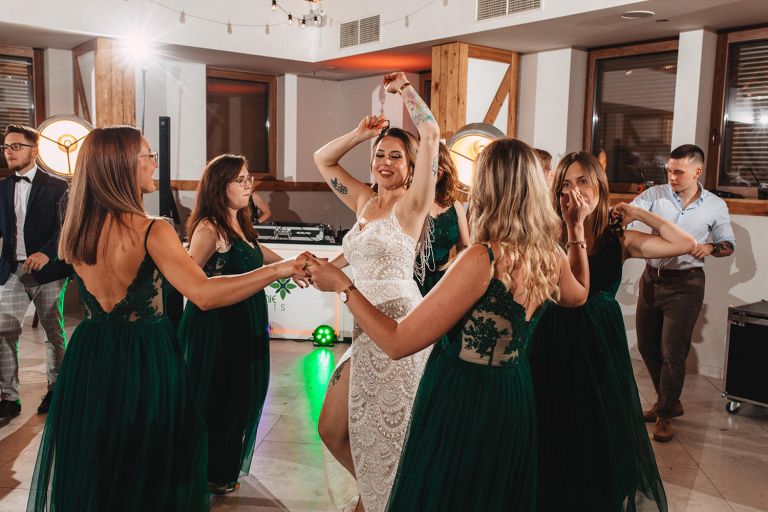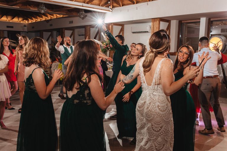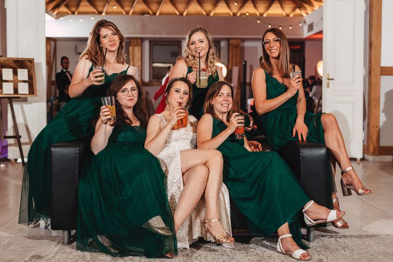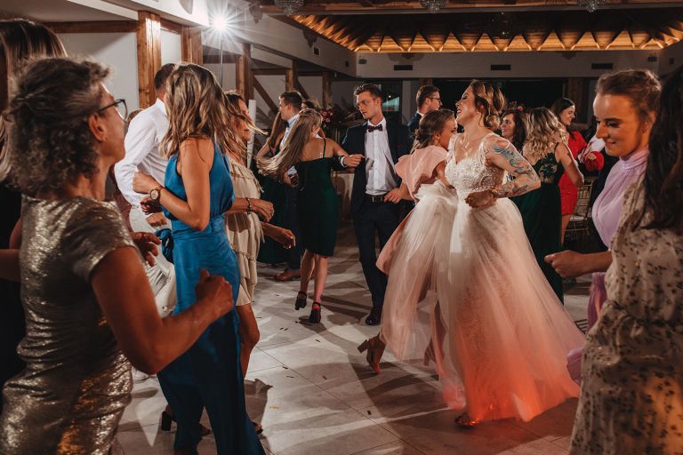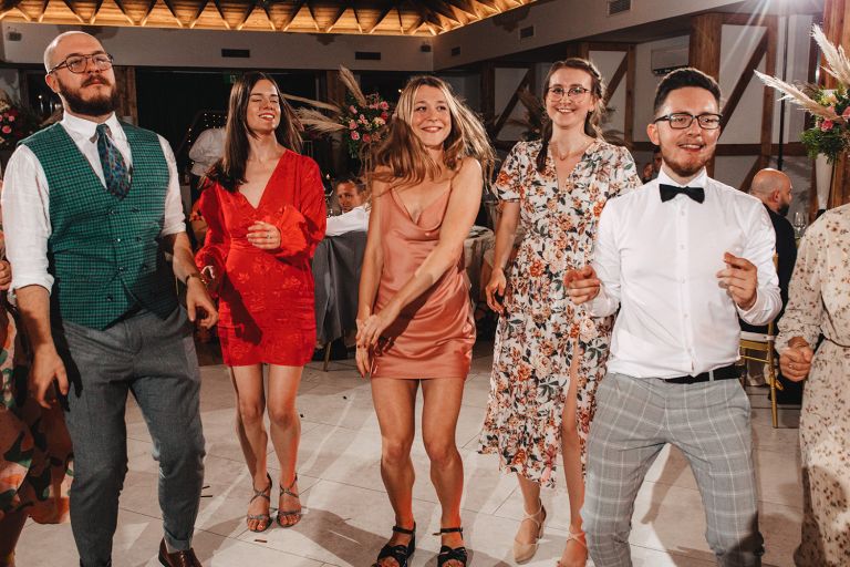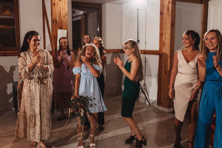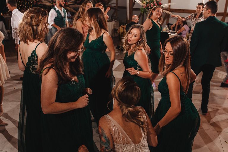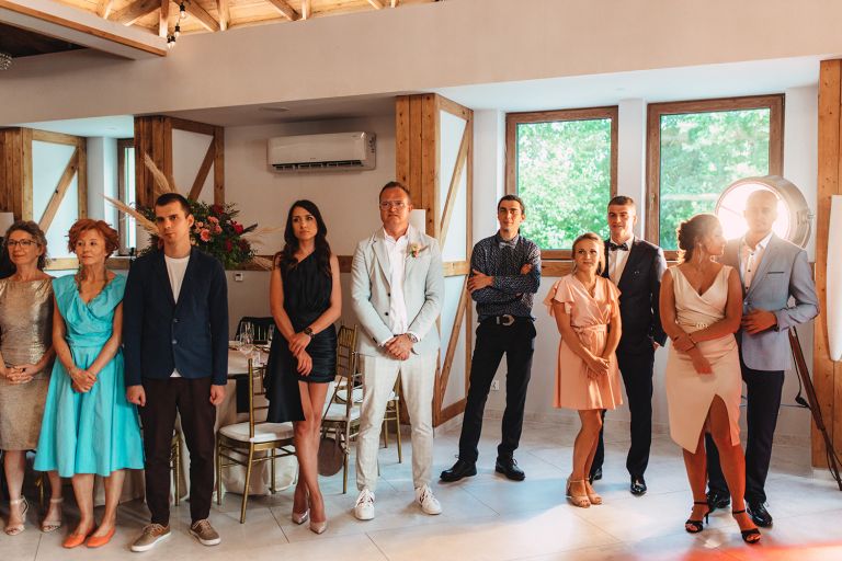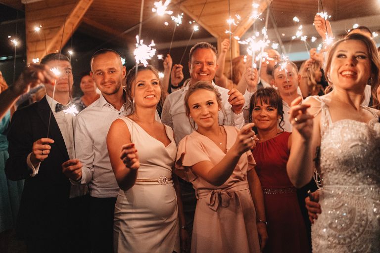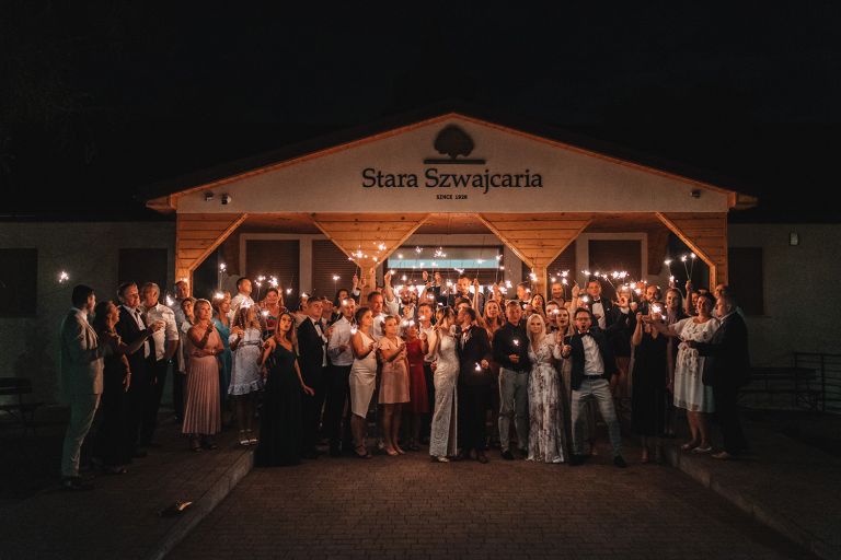 W trakcie przyjęcia udało się wykonać krótką sesję zdjęciową Zuzi z druhnami. Po zmroku zorganizowaliśmy wspólne zdjęcie grupowe ze sztucznymi ogniami. Ten moment miał wyjątkową atmosferę – światło, emocje i uśmiechy stworzyły idealny finał dnia.