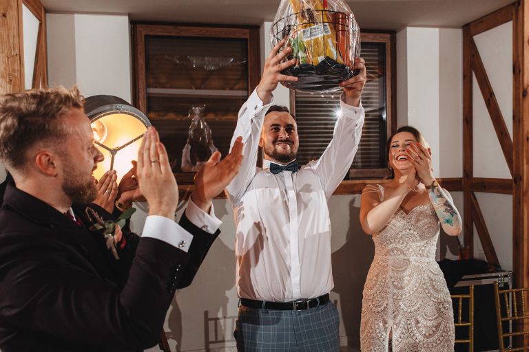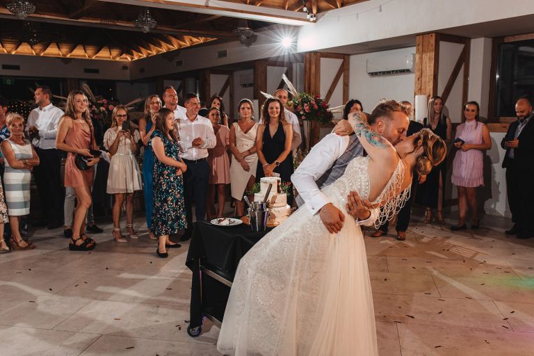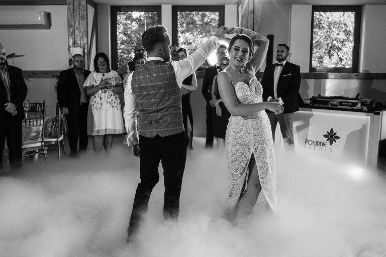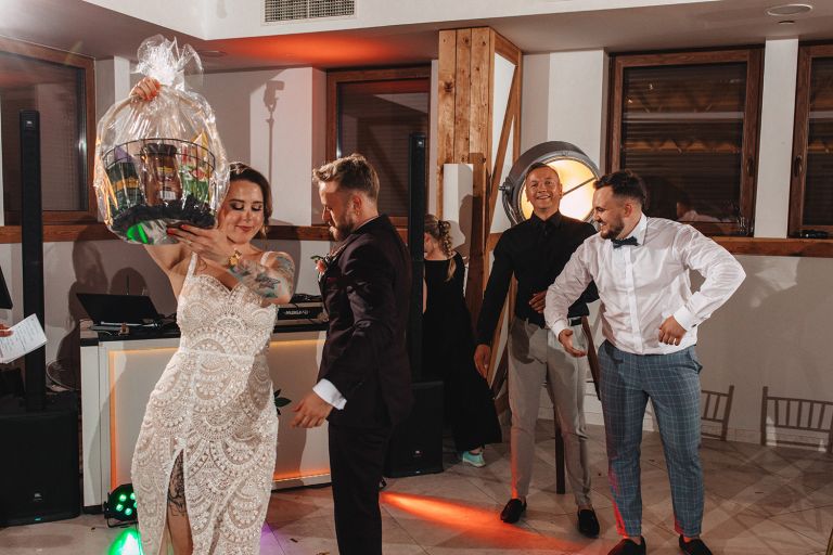 Po ceremonii przenieśliśmy się do restauracji Stara Szwajcaria w Gliwicach. To miejsce z klasą, w którym można połączyć nowoczesność z detalami nawiązującymi do tradycji. Sala została udekorowana subtelnie, ale bardzo spójnie ze stylem Pary Młodej.