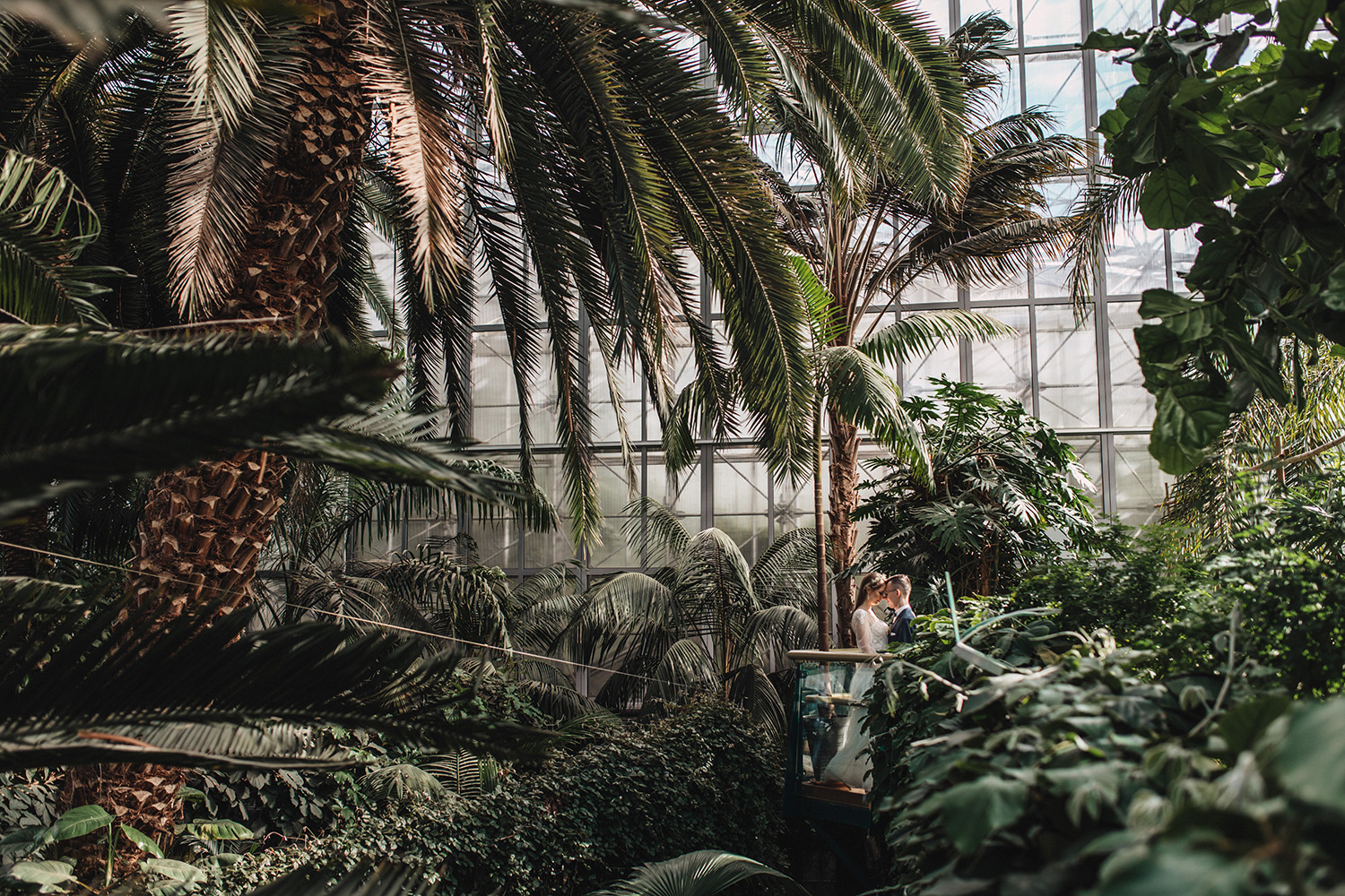 Sesja ślubna w Palmiarni Gliwice – zieleń, światło i romantyzm pod szkłem