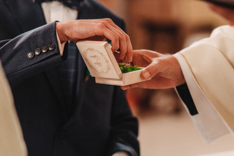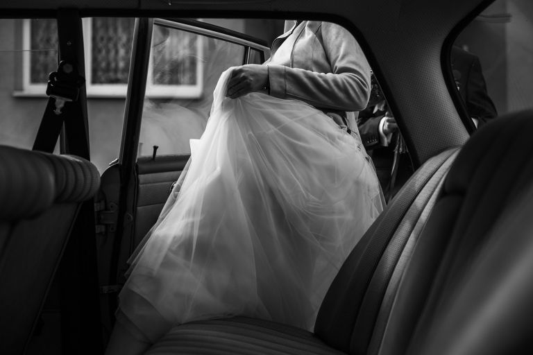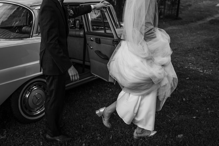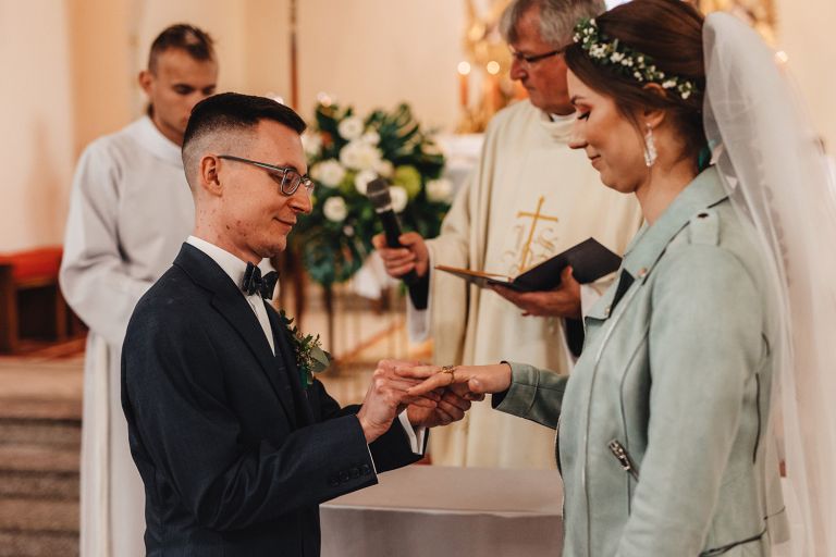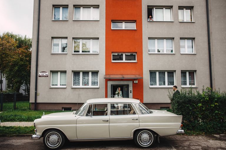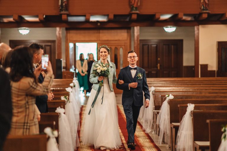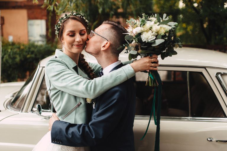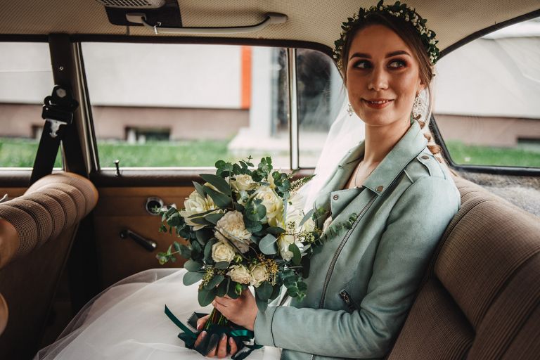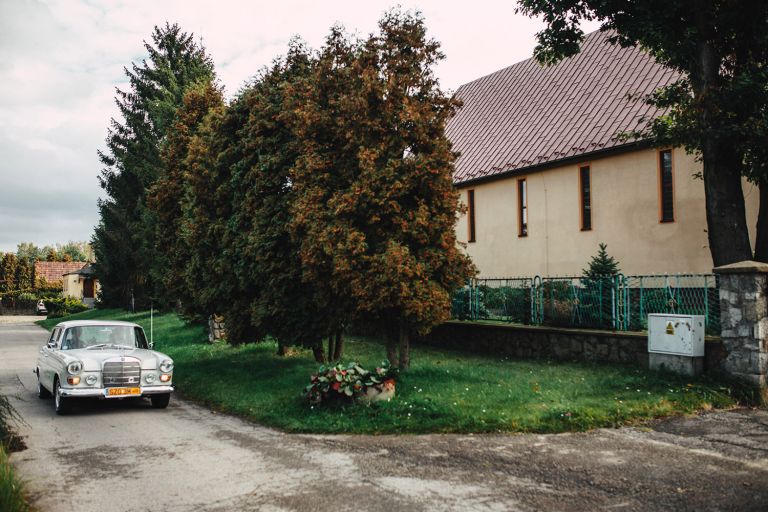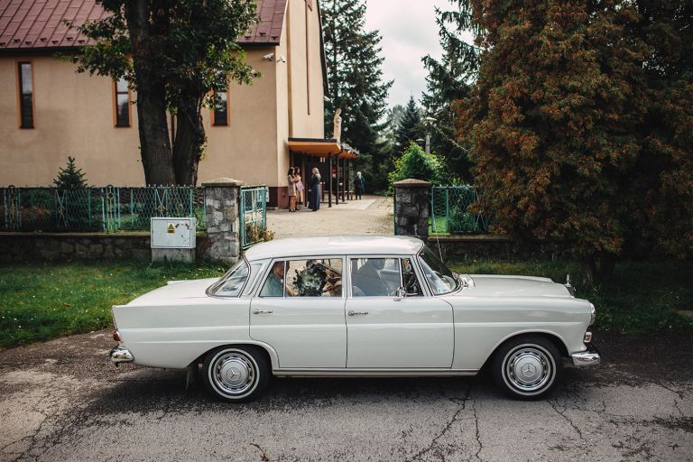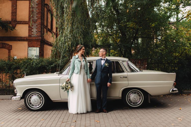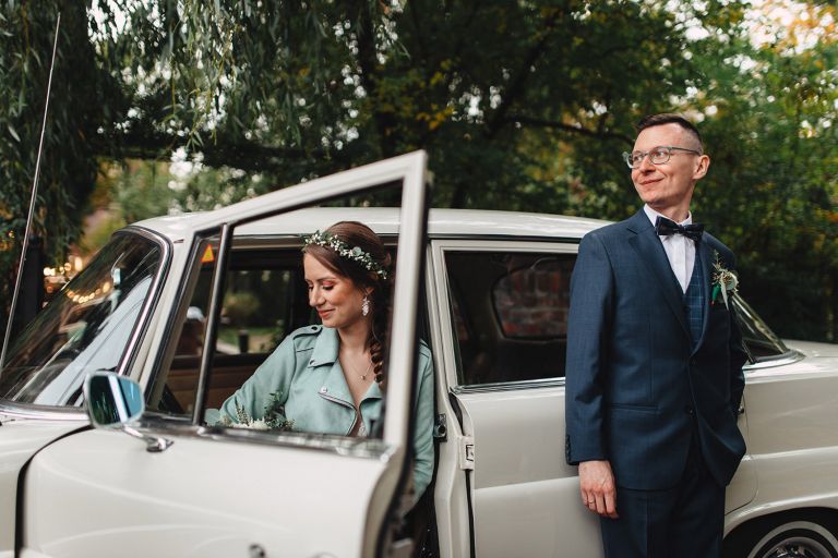 To, co wyróżniało ten ślub, to osobiste podejście do każdego detalu. Kasia i Szymon są farmaceutami – dekoracje zawierały m.in. fiolki po lekach jako wazony. Do ślubu pojechali klasycznym Mercedesem, który idealnie wpisał się w klimat miejsca.