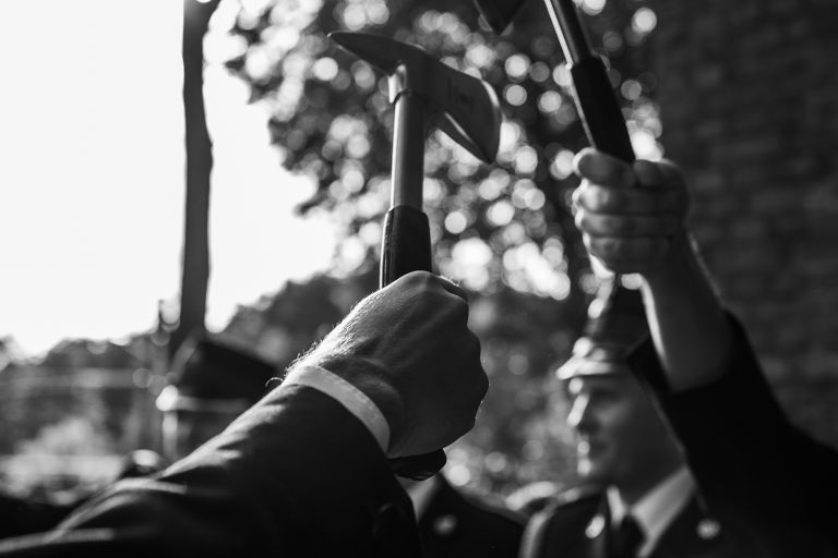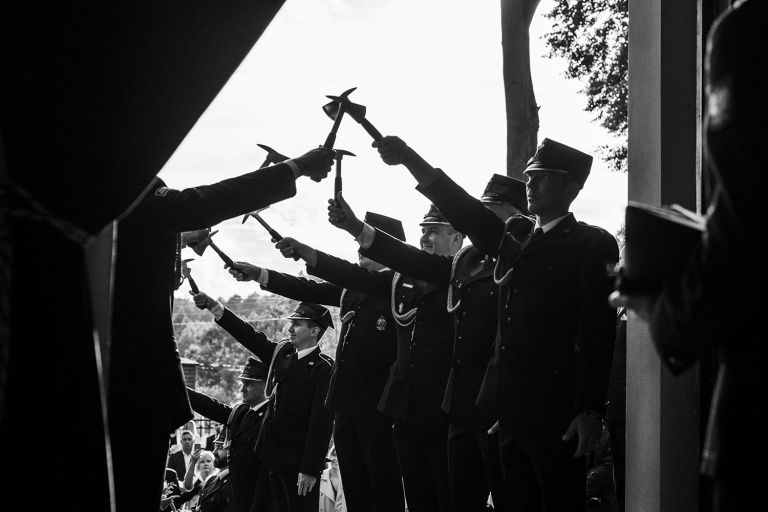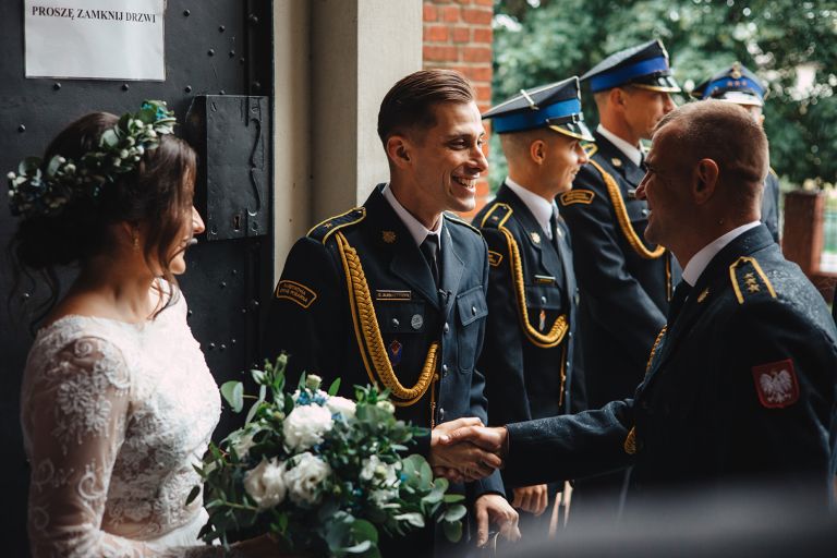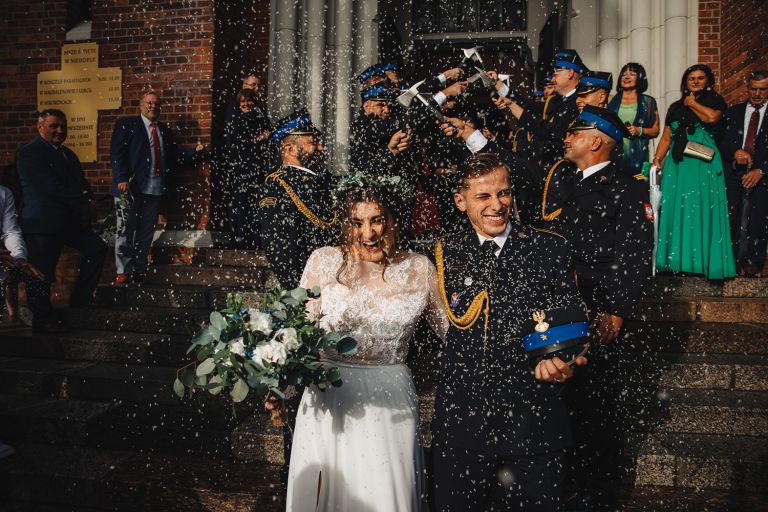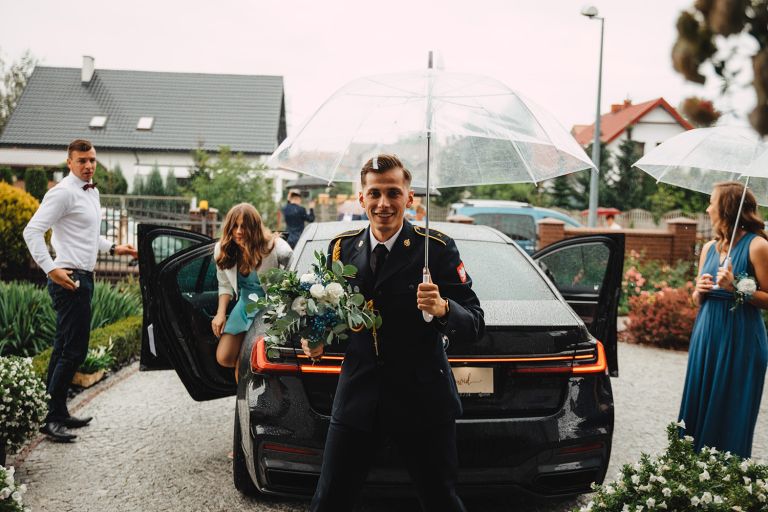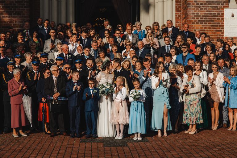 Choć pogoda nie rozpieszczała, deszcz nie przeszkodził w złapaniu czegoś pięknego. Tuż po ceremonii, w chwili zdjęcia grupowego, zza chmur wyszło słońce – dokładnie na ten jeden, symboliczny moment.