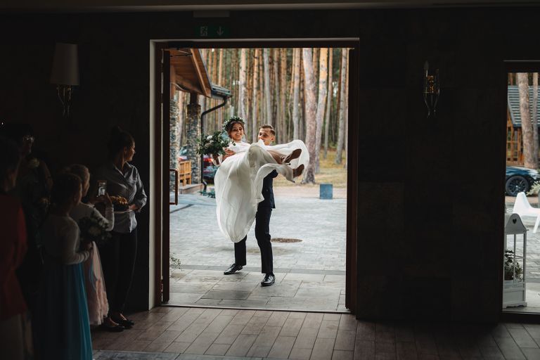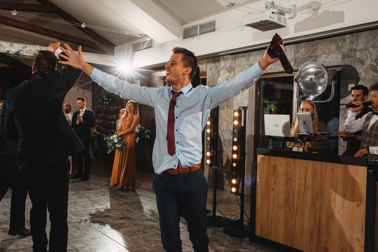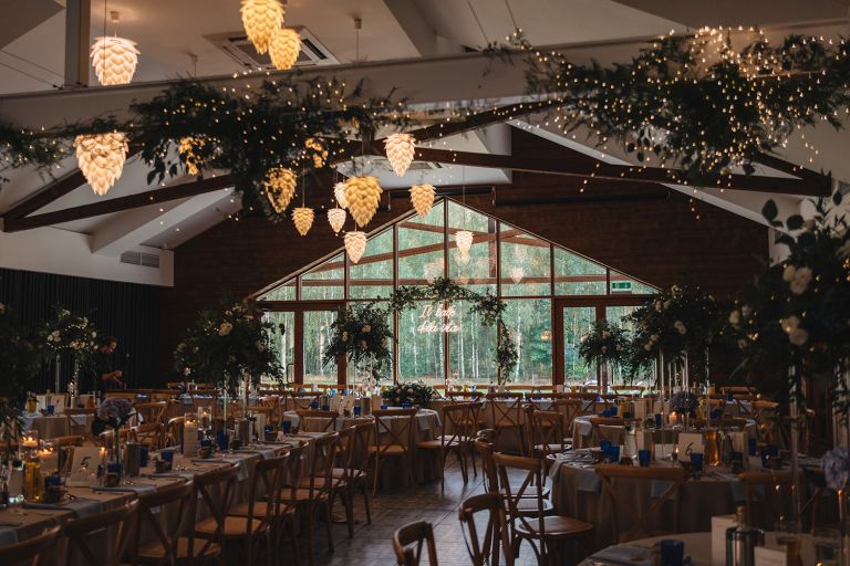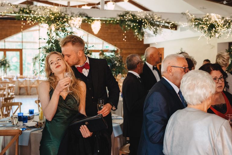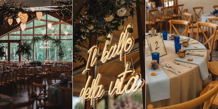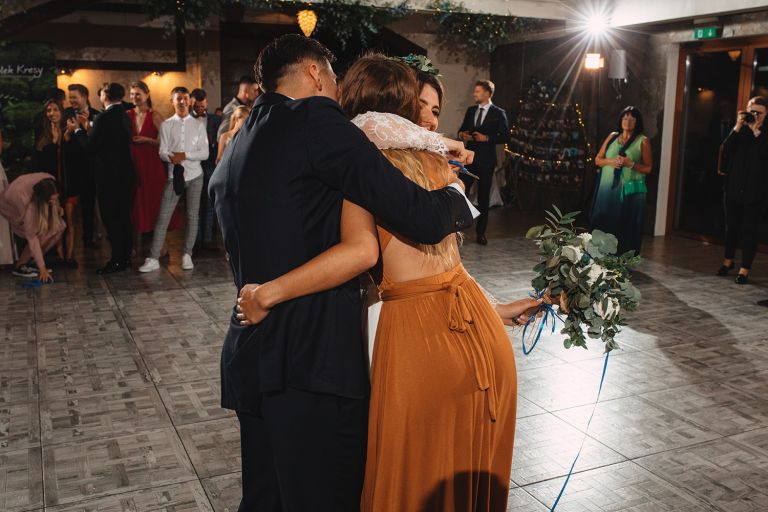 Przyjęcie weselne odbyło się w Przysiółku Kresy – miejscu, które nie potrzebuje udziwnień. Przeszklenia z widokiem na las, naturalne drewno i przestrzeń pełna światła – to wszystko stworzyło idealne tło dla tego dnia. Estetyka Ady i Dawida, dekoracje, oprawa – wszystko było ze sobą spójne. Ciepło, styl i brak przesady. Taki klimat kochamy fotografować.