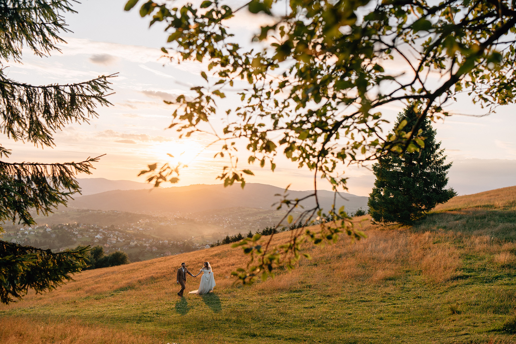 Sesja ślubna na Ochodzitej — naturalny plener z widokiem na Beskidy