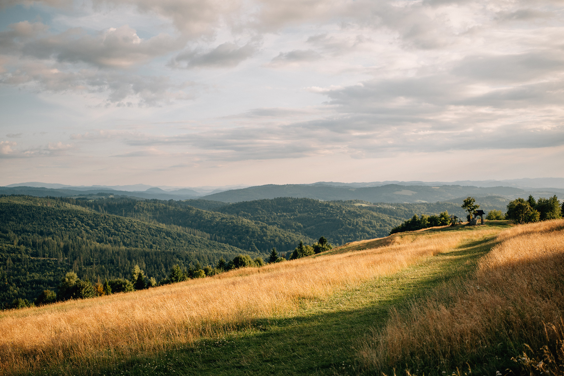 Sesja ślubna na Ochodzitej — naturalny plener z widokiem na Beskidy
